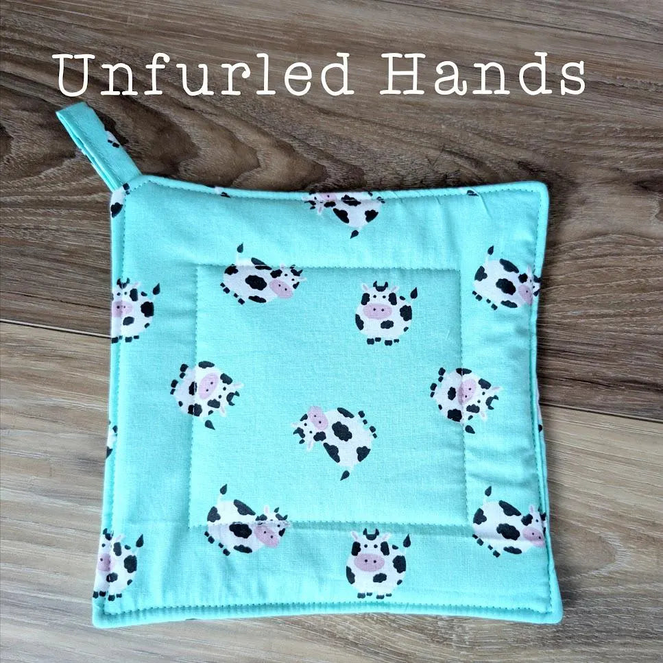 Step up your kitchen decor! These hot pads bring personality and color to any kitchen or break room. They also make a great gift!